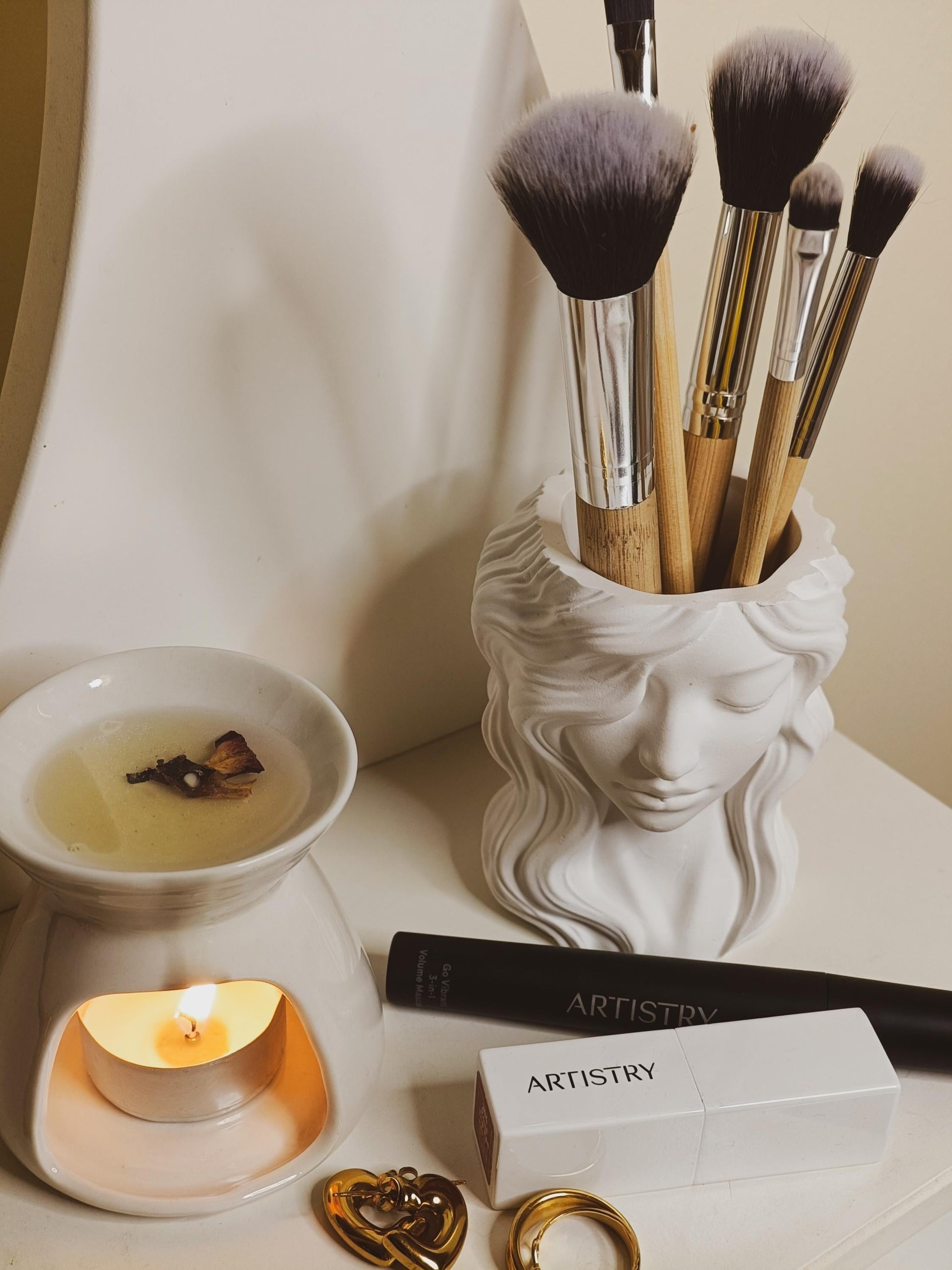 A elegância e a classe num suporte para pincéis de maquilhagem.